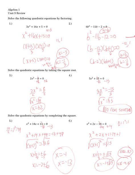 Read Algebra 1 Unit 9 Test Answers PDF